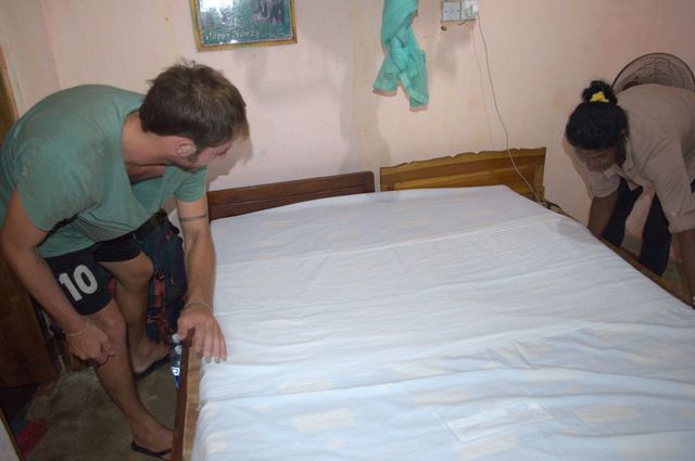 Basic two small rooms with bathroom two beds, fan and mosquito net and toilet and verandah.